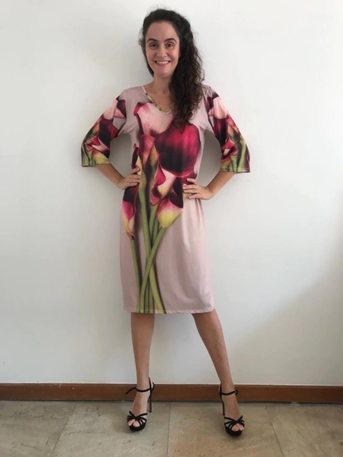 Vestido evasê manga 3/4 gola V Jersey Calla Vermelha